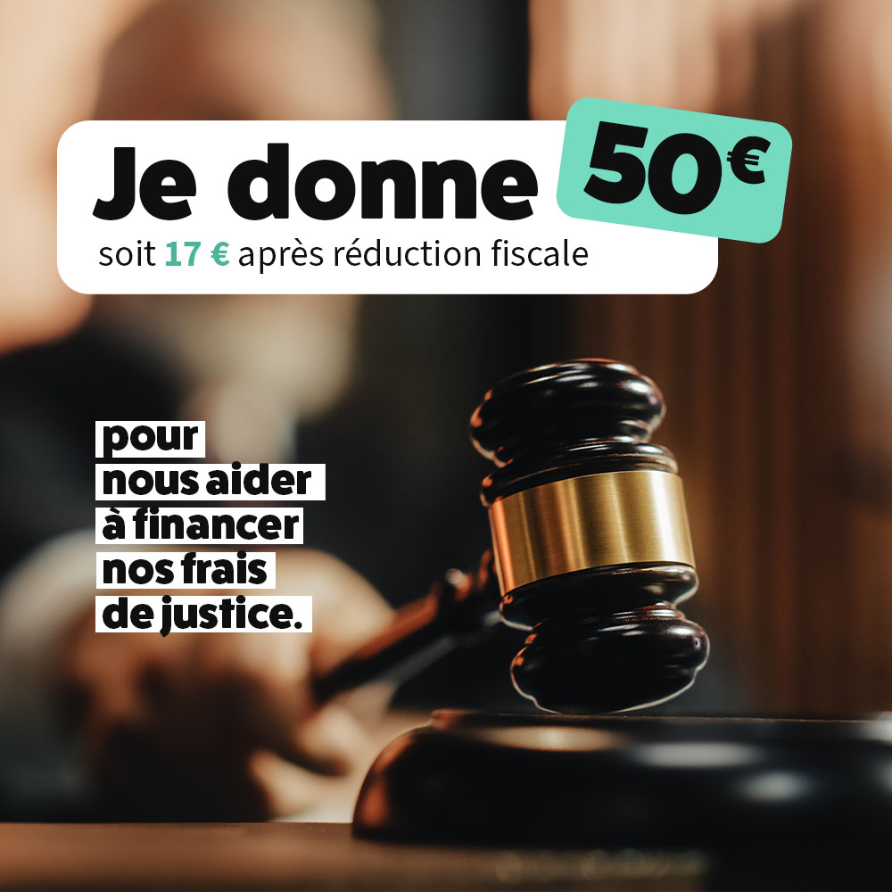 Accueil > Tous nos produits > DONS > Avec 50 €, aidez-nous à financer nos frais de justice